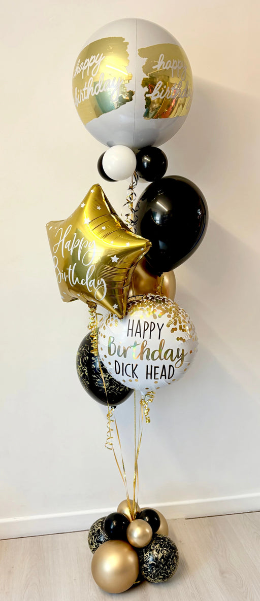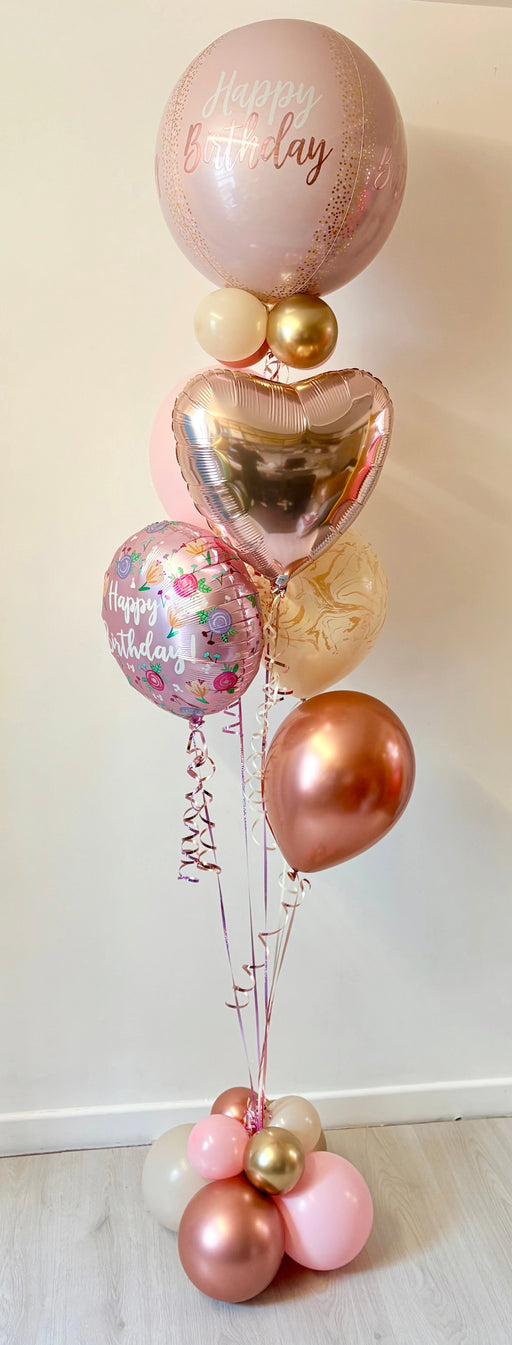 This pretty standout balloon bouquet has been created in a pink and gold theme incorporating an unusual orb balloon for wow effect. Birthday Foil H...