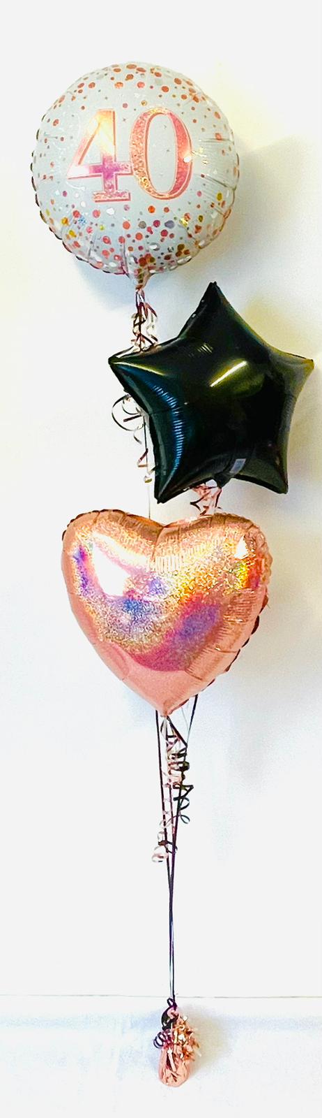 This pretty standout Age balloon bouquet has been created in a pink and gold theme incorporating an unusual orb balloon for wow effect. Birthday B...