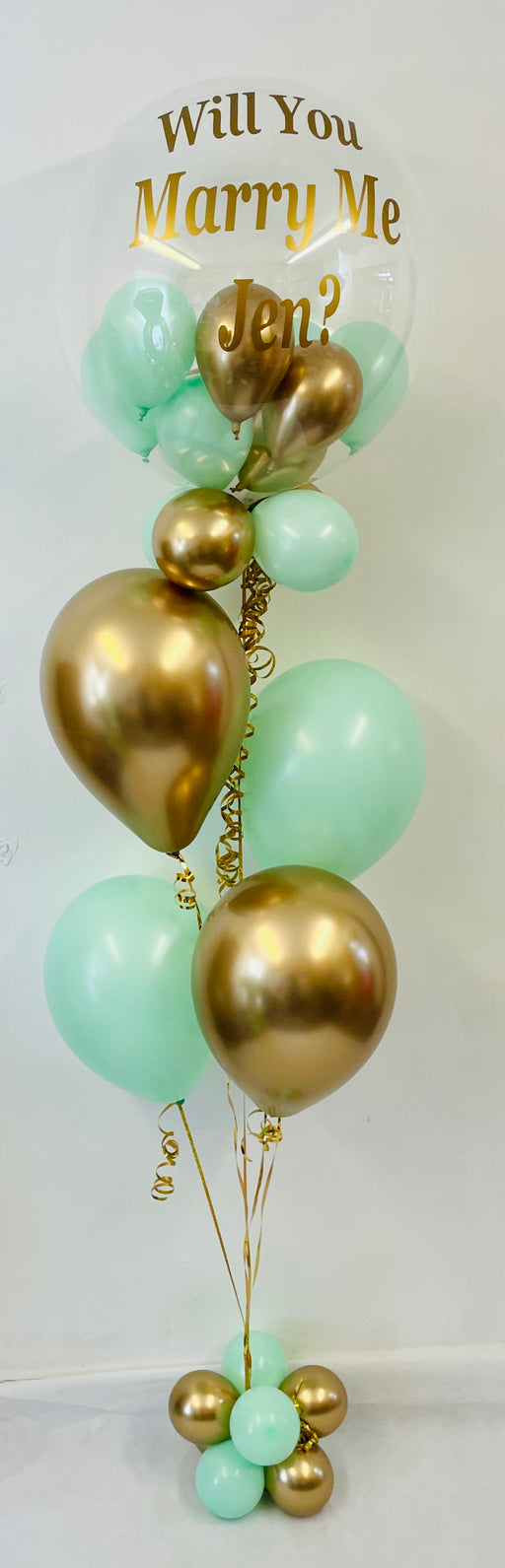 Deluxe Personalised Bubble Balloon Bouquet. The display includes: 1 x Large Bubble Balloon - Personalised and Filled With Mini Balloons. 4 x Plain...