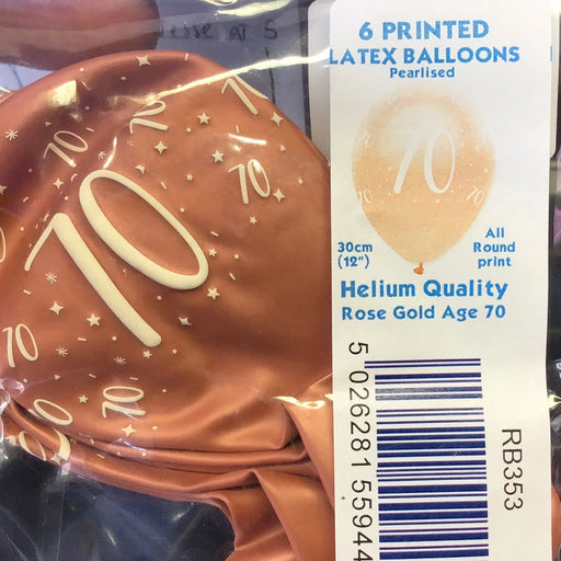 Age 70 Asst Birthday Balloons 6 Pack - Rose Gold