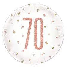 70th Birthday Balloons available in foils, latex and giant numbers.