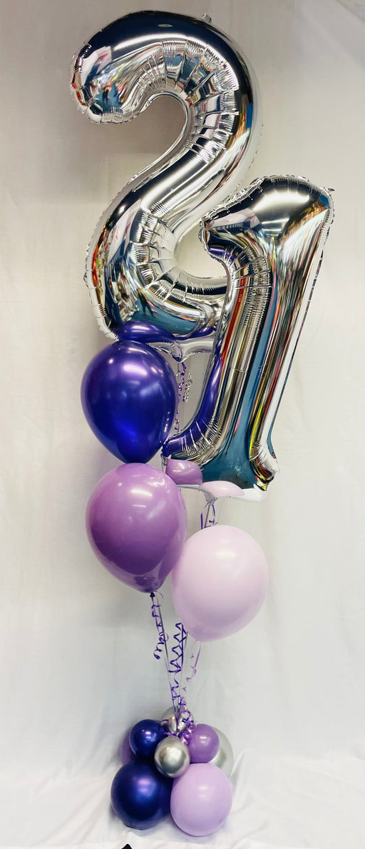 This pretty standout balloon bouquet has been created with a mixture of foil and latex balloons, incorporating our large shaped aged number balloon...