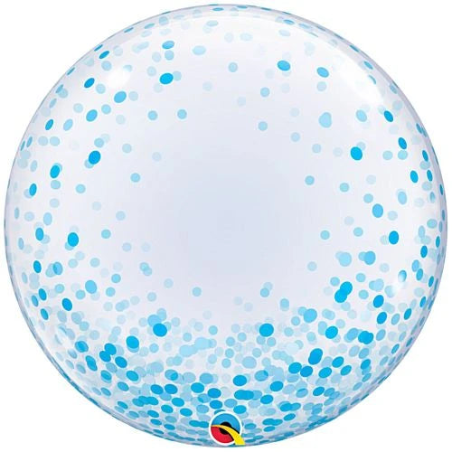 Clear 24” Deco Bubble Balloon With Printed Design (confetti is printed on not actually inside the balloon). Made of see-through stretchy plastic, B...