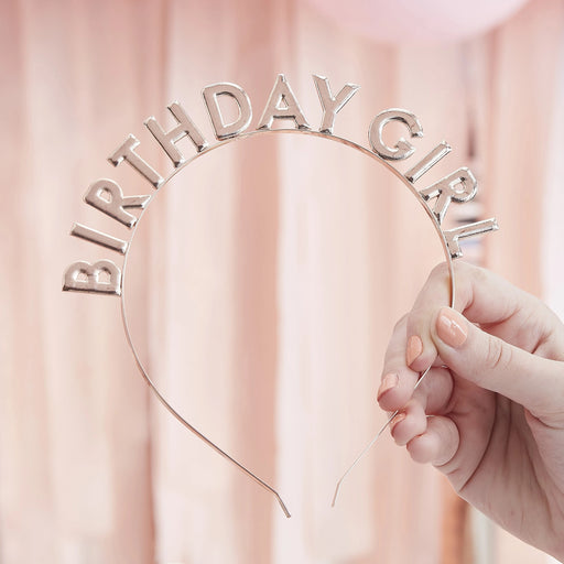 Metal Birthday Girl Headband In Rose Gold Colour. One Size Fits Most.