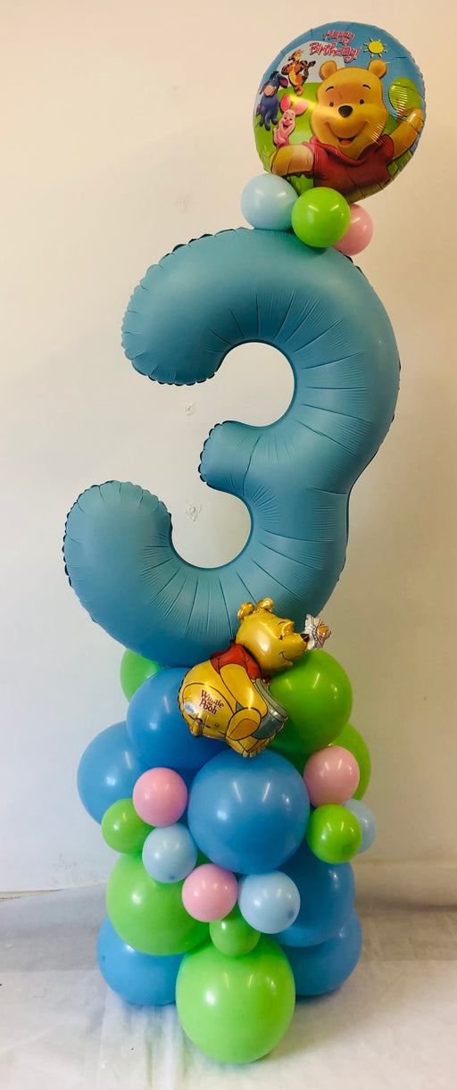 Age Themed Large Balloon Column. This large balloon number sits perfectly on a base of matching coloured balloons with a matching character balloon...