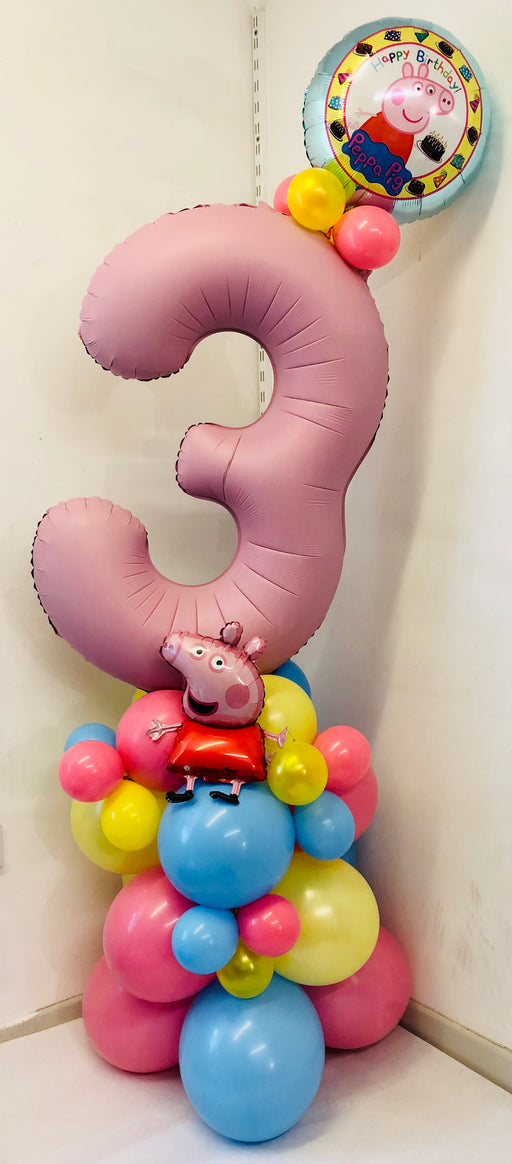 Age Themed Large Balloon Column. This large balloon number sits perfectly on a base of matching coloured balloons with a 2 matching character ballo...