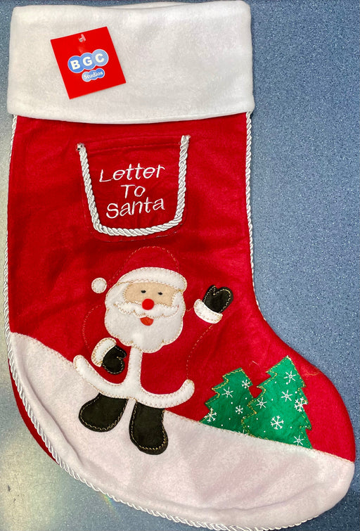 Felt Plush Christmas Stocking With Hanging Loop. Approx 39cm long.