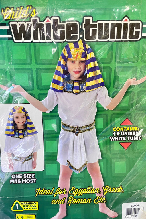 White Egyptian Style Childs Tunic. One Size Fits Most. (Age 4 -8 approx).