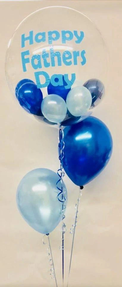 Personalised Fathers Day Balloon Bouquet This balloon bouquet includes a clear bubbled shaped balloon with mini balloons inside, and comes printed ...