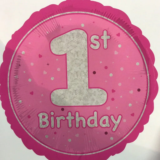 18" Foil 1st Birthday Girls Balloon - Pink Glitz