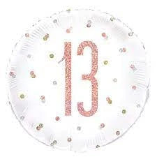 18" Foil Age 13 Balloon - Rose Gold Dots