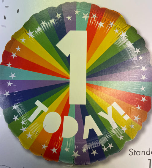 18" Foil Age 1 Birthday Balloon In Bright Design. Can be purchased uninflated or inflated with helium in store (COLLECTION ONLY).