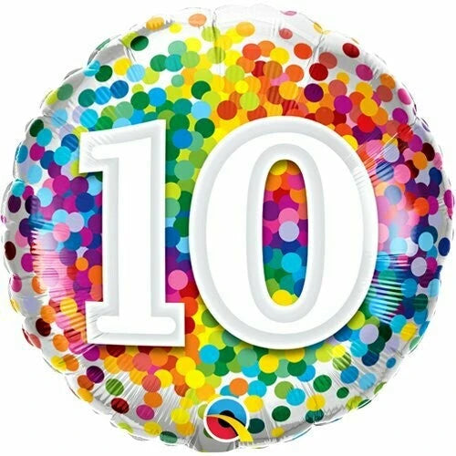 18" Foil Age 10 Balloon - Rainbow Confetti