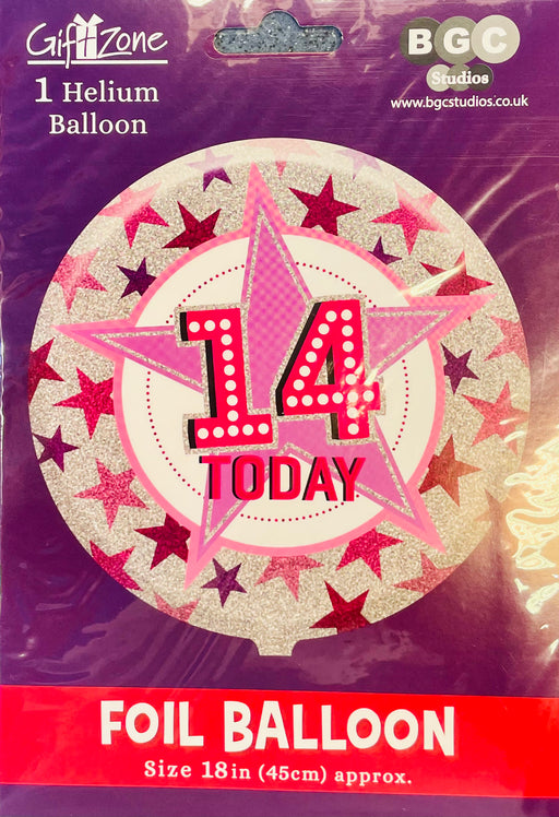 18" Foil Aged 10, 10th Birthday Pink Balloon In Bright Design. Can be purchased uninflated or inflated with helium in store.