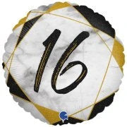 18" Foil Age 16 Balloon - Black/Gold Marble