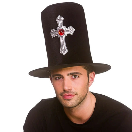 Grave Digger / Vampire Top Hat with large cross on front