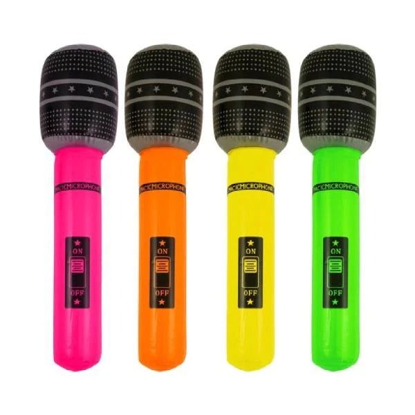 One Inflatable Microphone In Assorted Colours. Approx 40cm.