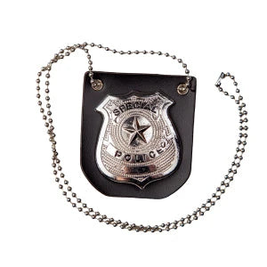 Silver Metal Police Badge On Neck Chain. Fancy Dress Novelty Item.