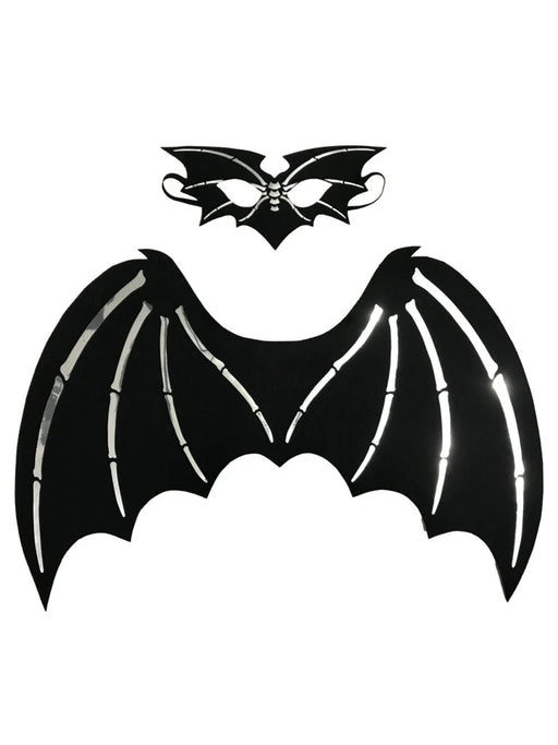 Black Skeleton Style Wings & Eyemask.One Size (Fits Children -  Adults). Recommended Age 14+. Fancy Dress Item.