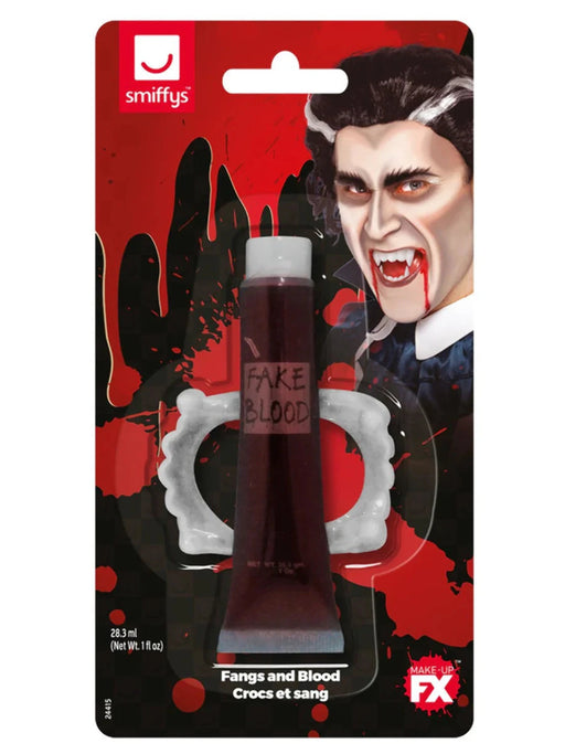 Fake Blood. Realistic Looking and Fang Set.  29.57ml Tube