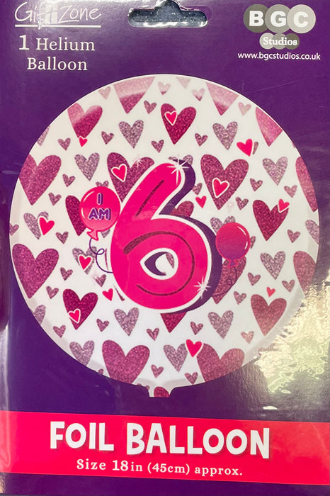 18" Foil Age 6 Balloon - pink hearts