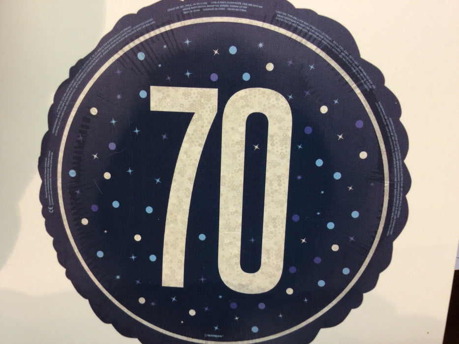 18" Foil Age 70 Balloon - Navy/Silver Sparkle