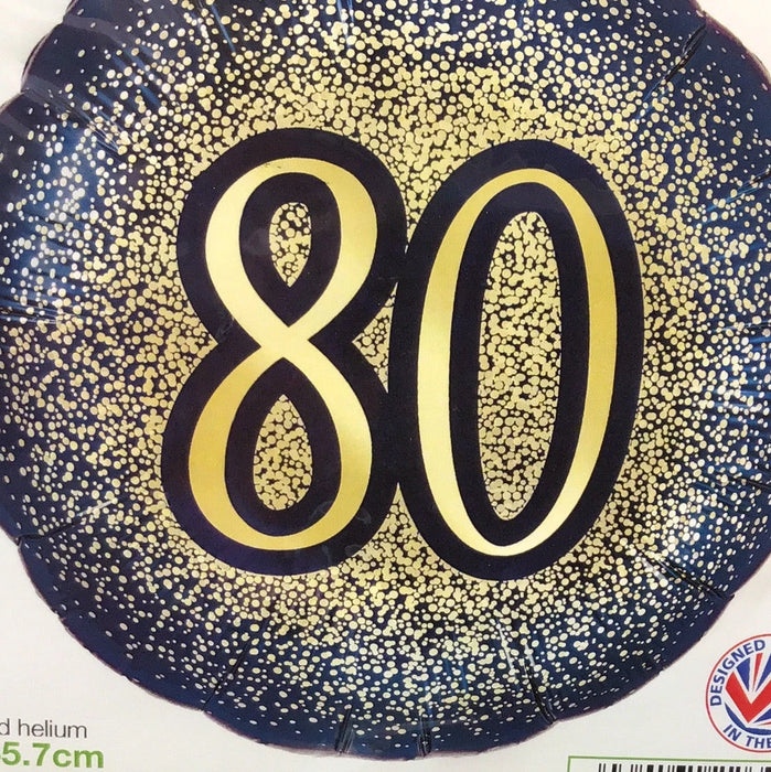18" Foil Age 80 Balloon - Navy & Gold