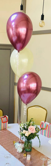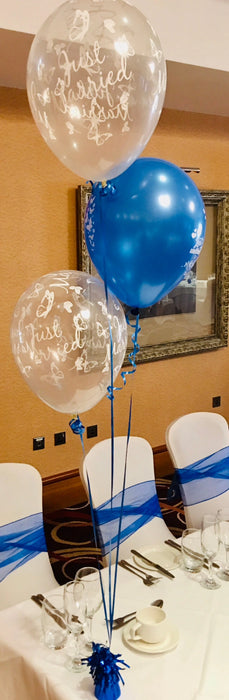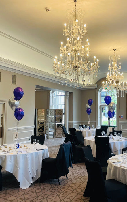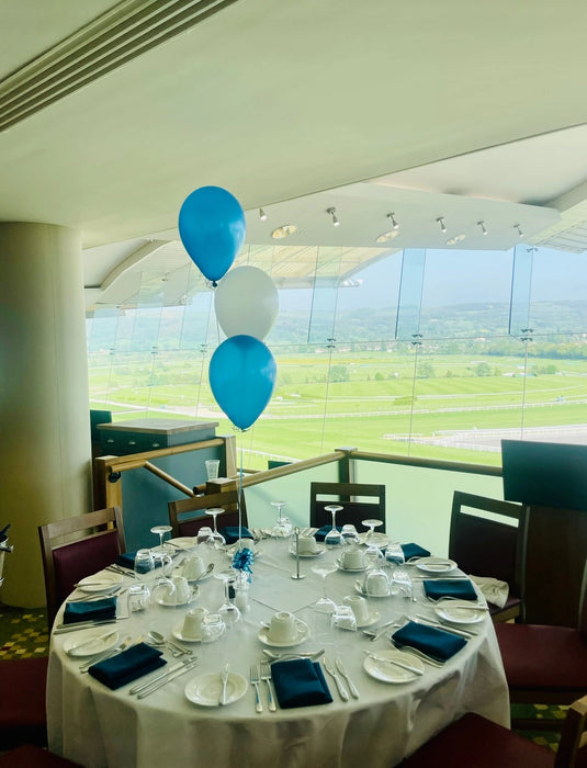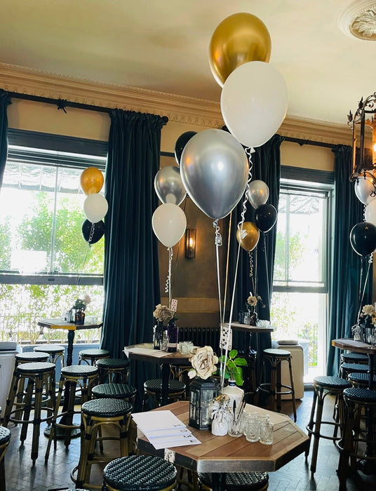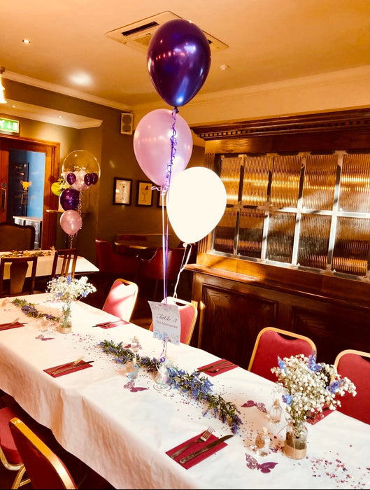 This classic balloon display includes 3 latex balloons on a tinsel weight. We can make these up into any colour scheme or theme to suit your special Occassion.