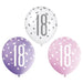 6 pack of Age 18 Balloons. LPink/White/Lilac Colours.