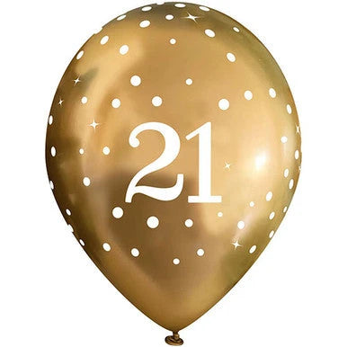 6 pack of Age 21 11” Latex Balloons. Assorted Colours.