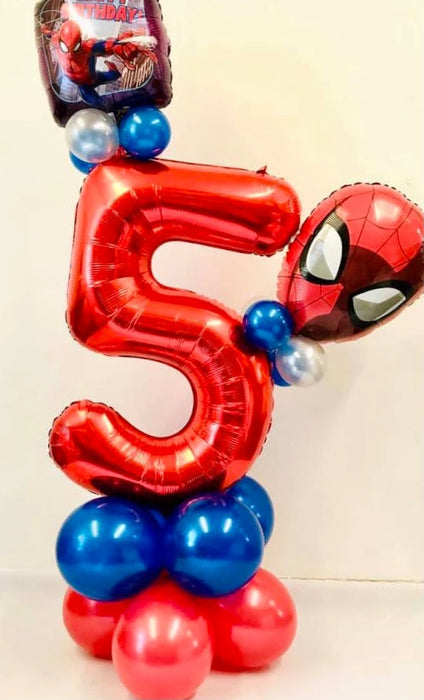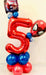 This large balloon number sits perfectly on a base of matching coloured balloons with a matching character balloon on top. The arrangement is finished off with bundles of mini balloons underneath nestled in with a mini character balloon.