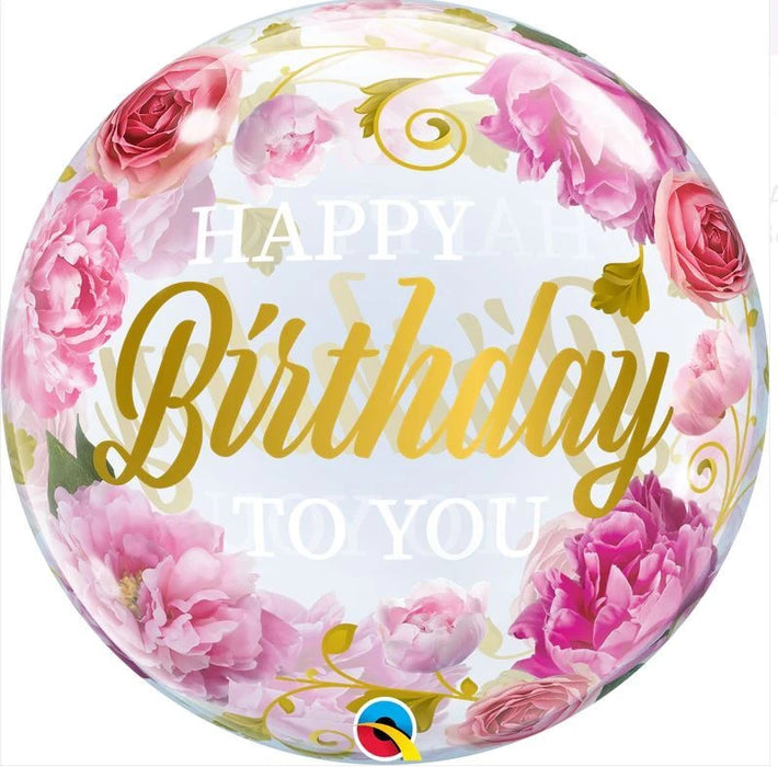 Birthday Bubble Balloon - Pink Flowers
