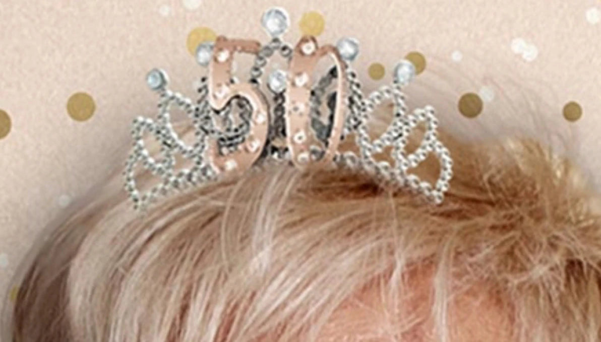 A Sophisticated & Stunning Rose Gold Metallic Diamante Gift Boxed Birthday Tiara. The Numbers Have Been Created in Padded Foil Gently Sprinkled with Diamante Stones For The Classy Lady! Hair Grip Design For Wear With Ease.