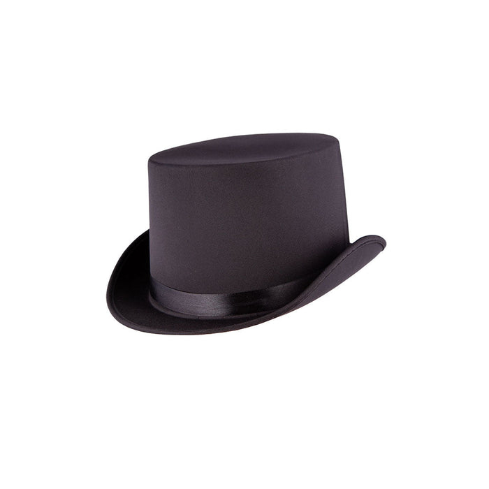 Black Satin Top Hat with a Black Ribbon Trim