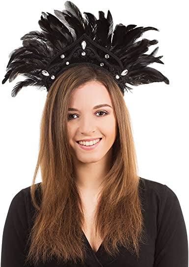 Carnival Style Feather Headdress - Black