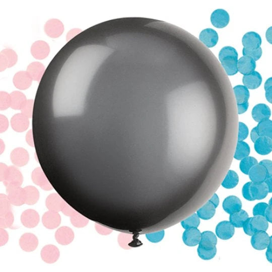 Giant 24” Black Gender Reveal Balloon. Includes Latex Balloon and Blue and Pink Confetti (just add the colour of your choice).