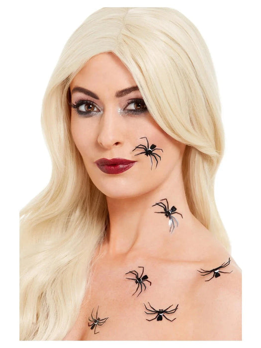Smiffys Make-Up FX, 3D Spider Stickers, Black, 6pcs
