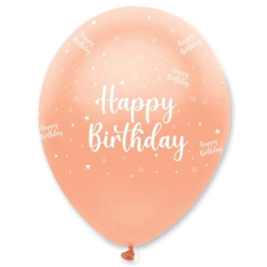 6 pack of Happy Birthday 11” Latex Balloons. Rose GoldColours.