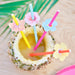 Each pack contains 16 x orange, yellow, pink and blue paper straws measuring 19cm long with 16 x flower toppers.