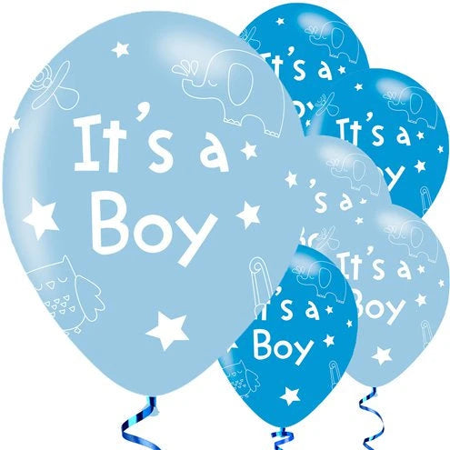 6 pack of It's A Boy Latex Balloons. Asst Colours.