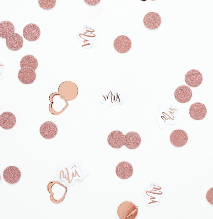 Scatter this Rose Gold Mr & Mrs confetti onto your party table, or add to invitations and presents to add some glitz.