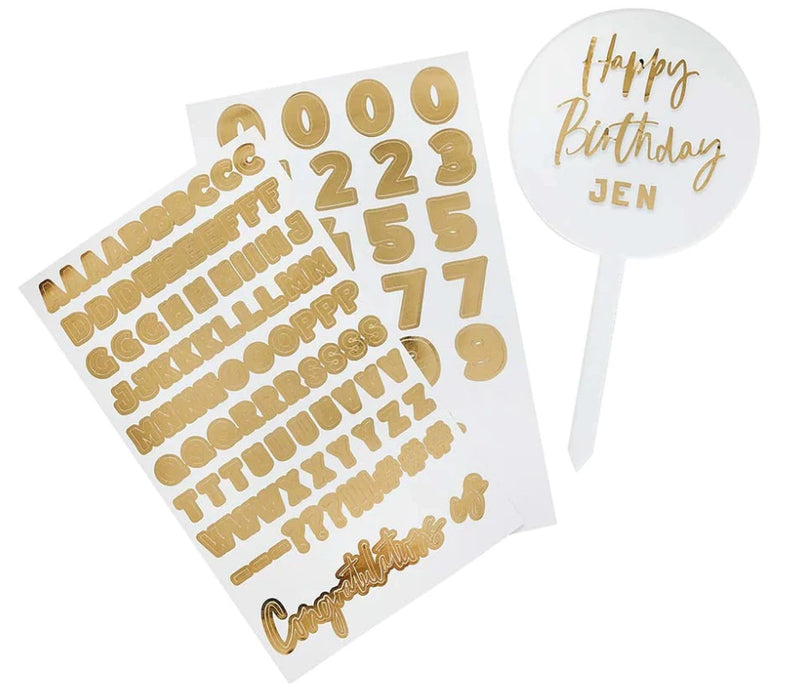 Personalised Acrylic Cake Topper With Two Gold Sticker Sheets