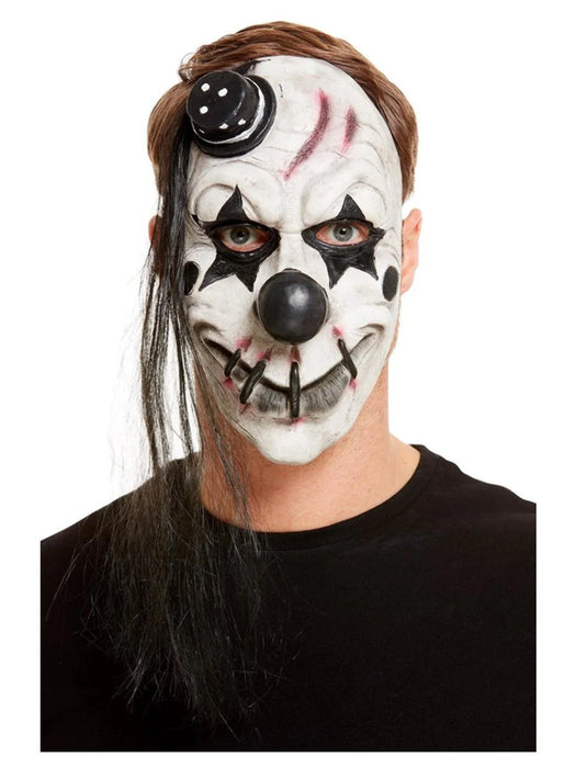 Latex Horror Clown Front Face Mask With Strand Hair.