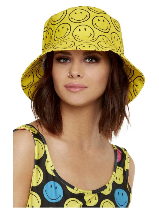 Smiley Printed Bucket Hat, Yellow & Black. Quality Material.
