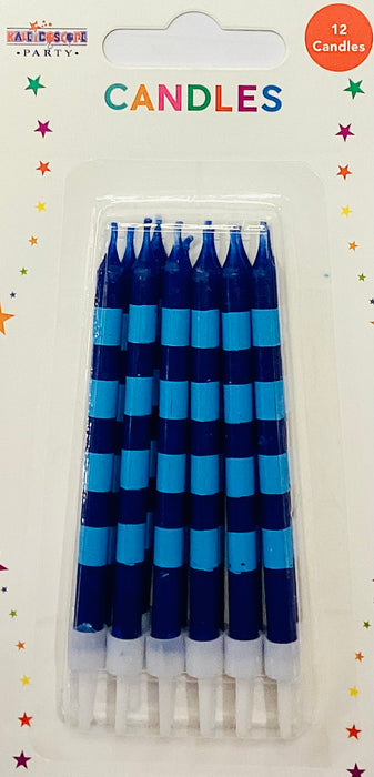 Striped Long Candles with plastic holders - Blue