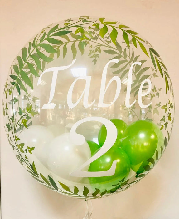 These table number balloons are made using a 24” deco bubble balloon filled with mini balloons with each table number printed onto the balloon. We can make these up into any colour scheme or theme to suit your special Occassion.