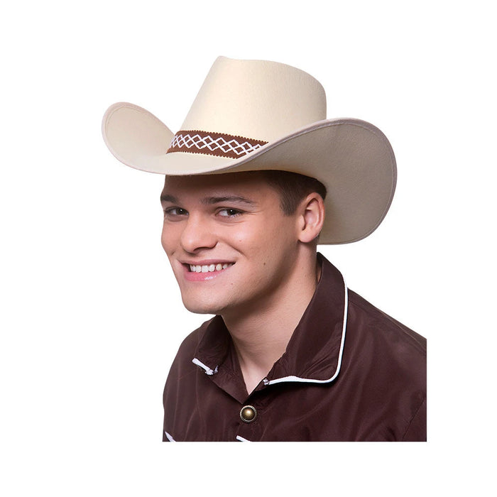 Hard Texan Style Cowboy Hat With Patterned Band.