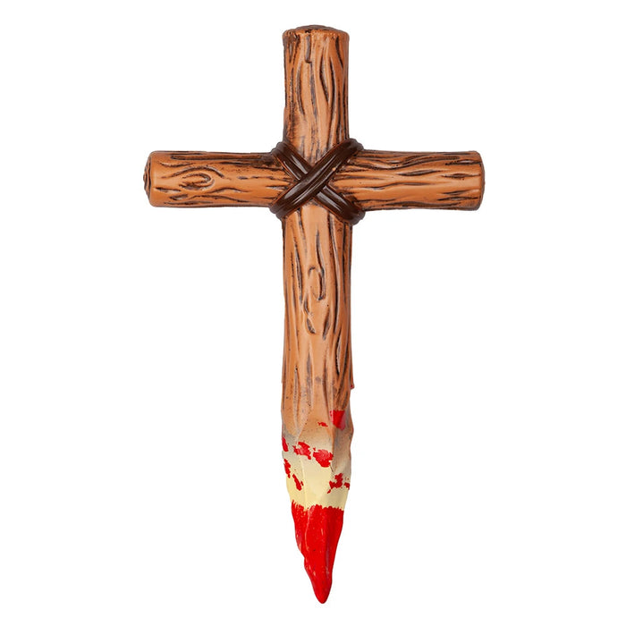 Plastic Halloween Vampire Cross Prop With Bloody Finish.