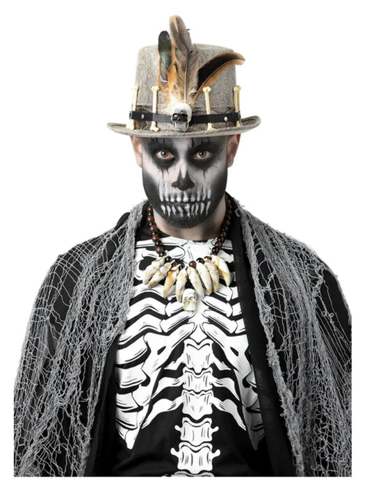 Felt Top Hat With Feather And Bone Decoration.